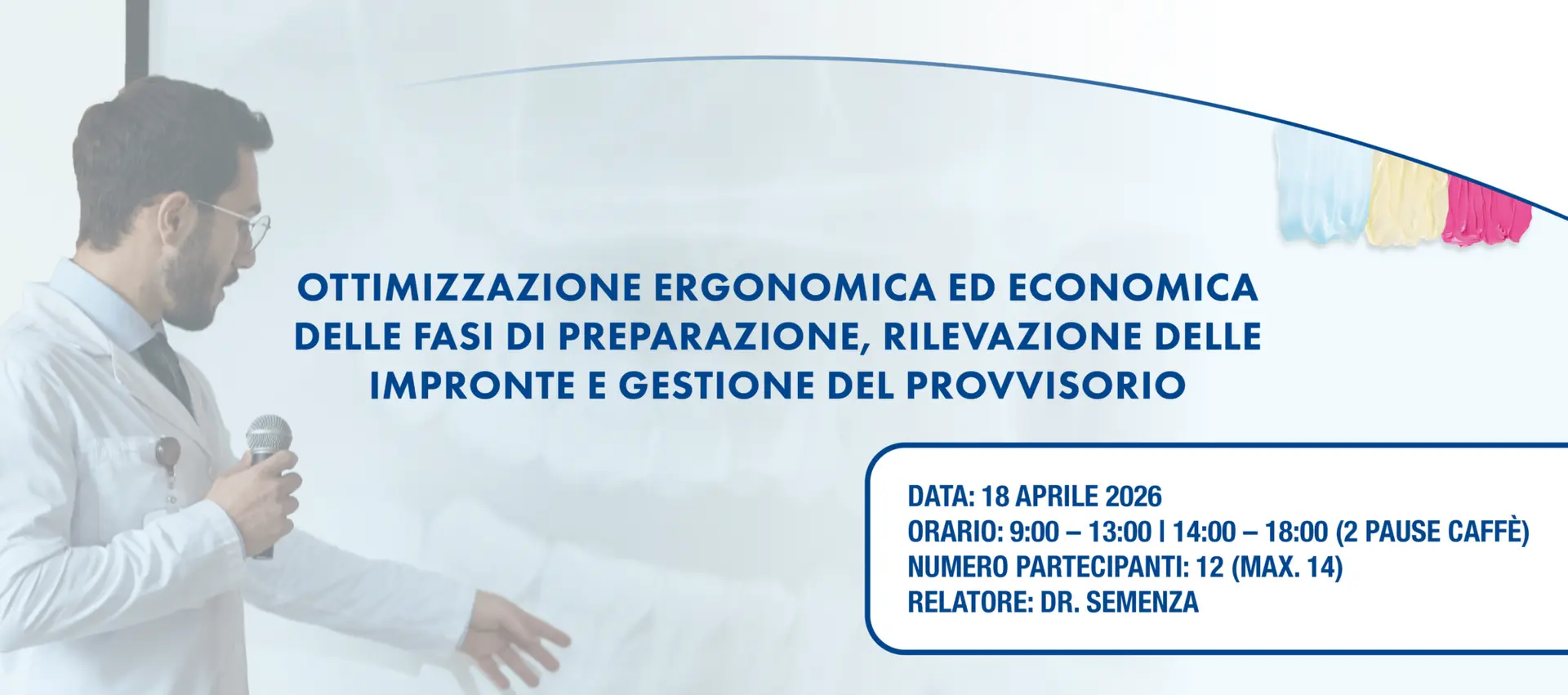 Il corso è rivolto ai professionisti che desiderano affinare le proprie competenze nella pratica quotidiana, approfondendo tecniche di rilevazione d’impronta e gestione del provvisorio per ottenere risultati clinici predicibili e biologicamente integrabili.